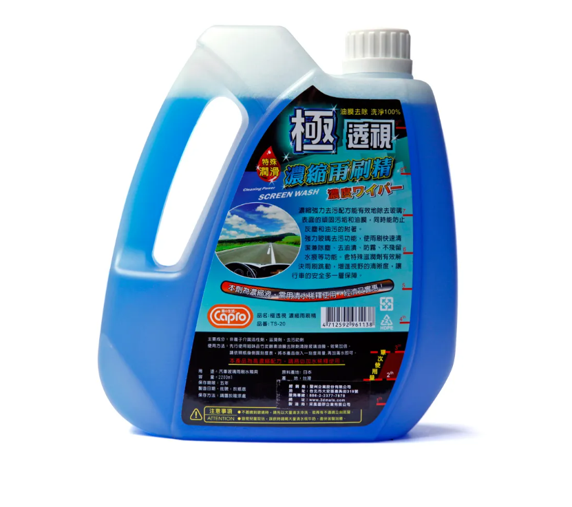 超濃縮!防止視線模糊,有效防止閃光濃縮強力去污配方,能有效去除玻璃表面的頑固污垢和油膜同時能防止灰塵和油污的附著強力玻璃去污能力,使雨刷快速清潔兼除塵、去油漬、不殘留水痕等功能含特殊滋潤劑,有效解決雨刷跳動增進視野的清晰度,讓行車安全多一層保障